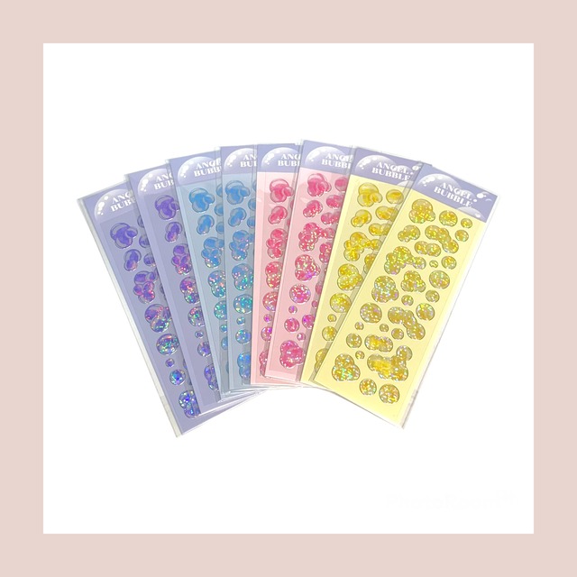 シートサイズ:5×15cm シールサイズ:約1~2cm キラキラの泡がカワイイバブルシール✨ 流行りのトレカケースに貼ると最高にカワイイです! ひとつひとつデザインが異なるので、自分だけのオリジナルが作れます 色は、イエロー、ピンク、ブルー、パープルの4種類ご用意しております。 ◇海外製品の為、デザインに多少のズレやキズがある場合がございます。 予めご理解頂いた上、ご購入頂きますようお願い致します。 お使いの端末や照明の明るさ等で、画像と実物が多少異なる場合がございます。